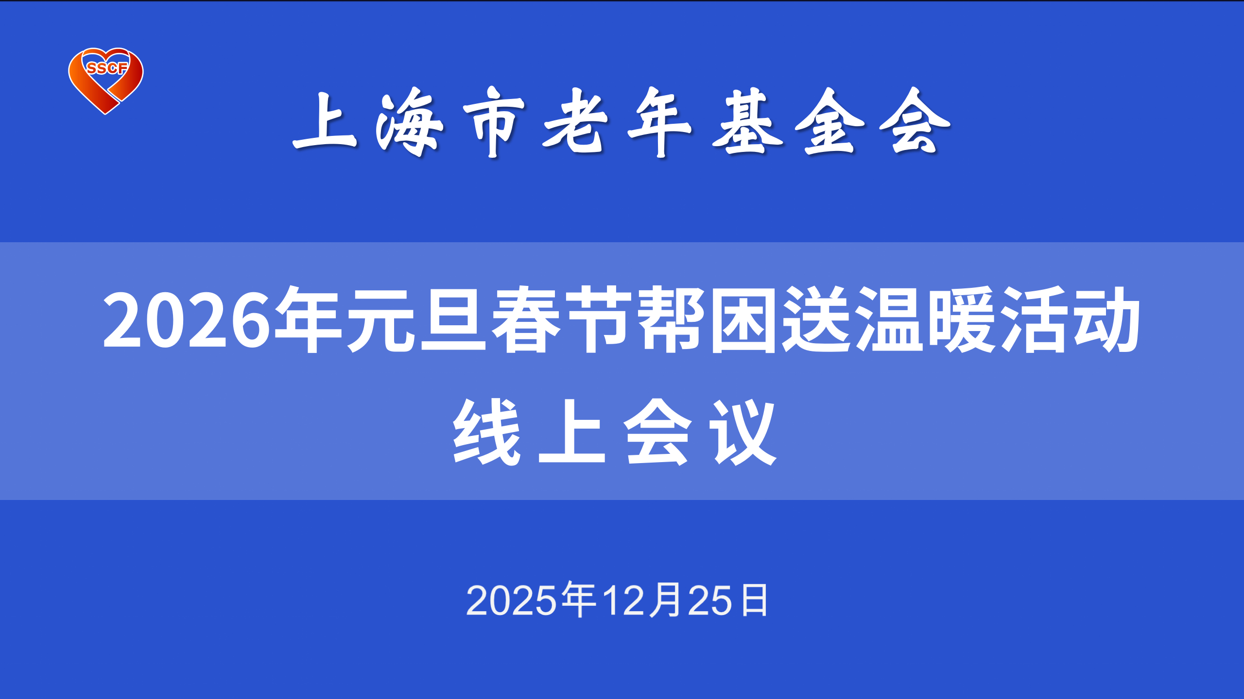 12月25日,上海市老年基金会召开2026年元旦春节帮困送温暖活动线上会议。副理事长兼秘书长孙萍主持会议,副理事长兼副秘书长李佳玉、各区代表处、行业工作站负责人以及市会办公室全体工作人员参加。