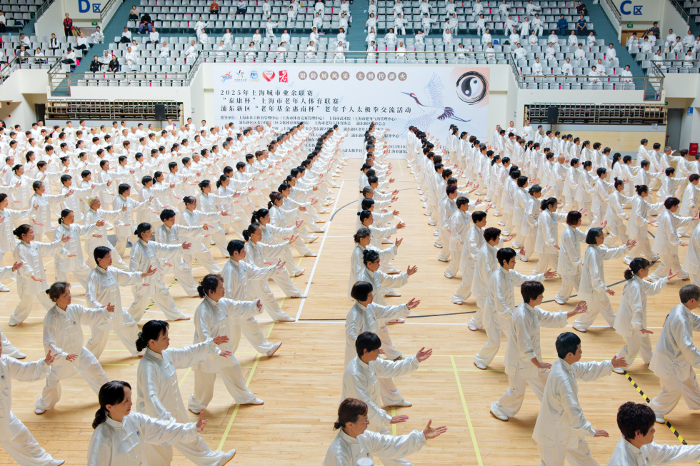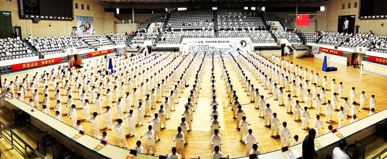 太极拳是中华民族传统文化的瑰宝,深受浦东广大太极拳爱好者,尤其是老年人的欢迎。本次千人交流项目是24式太极拳,千名老年人穿着统一的服装,随着节拍的韵律,动作一致、拳法规范,彰显了老年人太极拳健身的风采。为了办好这次活动,浦东新区老年人体育协会组织了各街镇太极拳骨干进行培训,在此基础上由东育拳社组织辅导老师顶着酷暑早出晚归到各个街镇太极拳站点进行辅导。