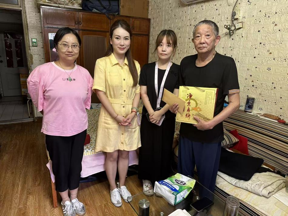 天目西路街道的徐文义老人,是此次慰问的重点对象。作为一名无亲眷照料的特困孤老,他常年被慢阻肺与哮喘纠缠,每一次呼吸都伴随着病痛的考验。受限于经济条件,他始终无法获得持续、系统的治疗,日常生活举步维艰。慰问组一行刚踏入老人家中,便围坐在他身边,细致询问近期的身体状况、用药情况,反复叮嘱秋冬季节的保暖要点与日常护理细节。随后,工作人员将中秋月饼递到老人手中,当海斯坦普公司代表把慰问金郑重交到他掌心时,老人激动得眼眶泛红,连连道谢。