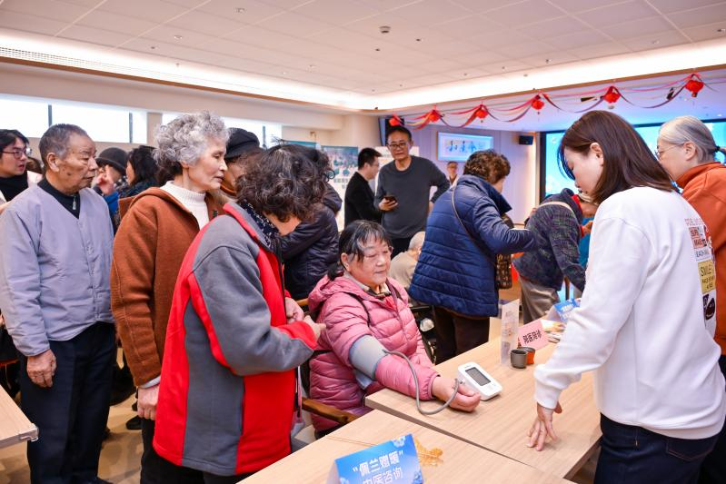在“安康驿站·暖心坊”,从“AI把脉”的科技中医体验到“佩兰赠暖”的传统中医咨询,从“法暖人心”的公益法律咨询到“蜜赠心安”的防金融诈骗宣传,加上认知症AI机器人体验、居家养老、辅具租赁、专业助浴、温馨陪诊等服务介绍,如同一张细密的健康与权益守护网,全方位呵护长者生活。