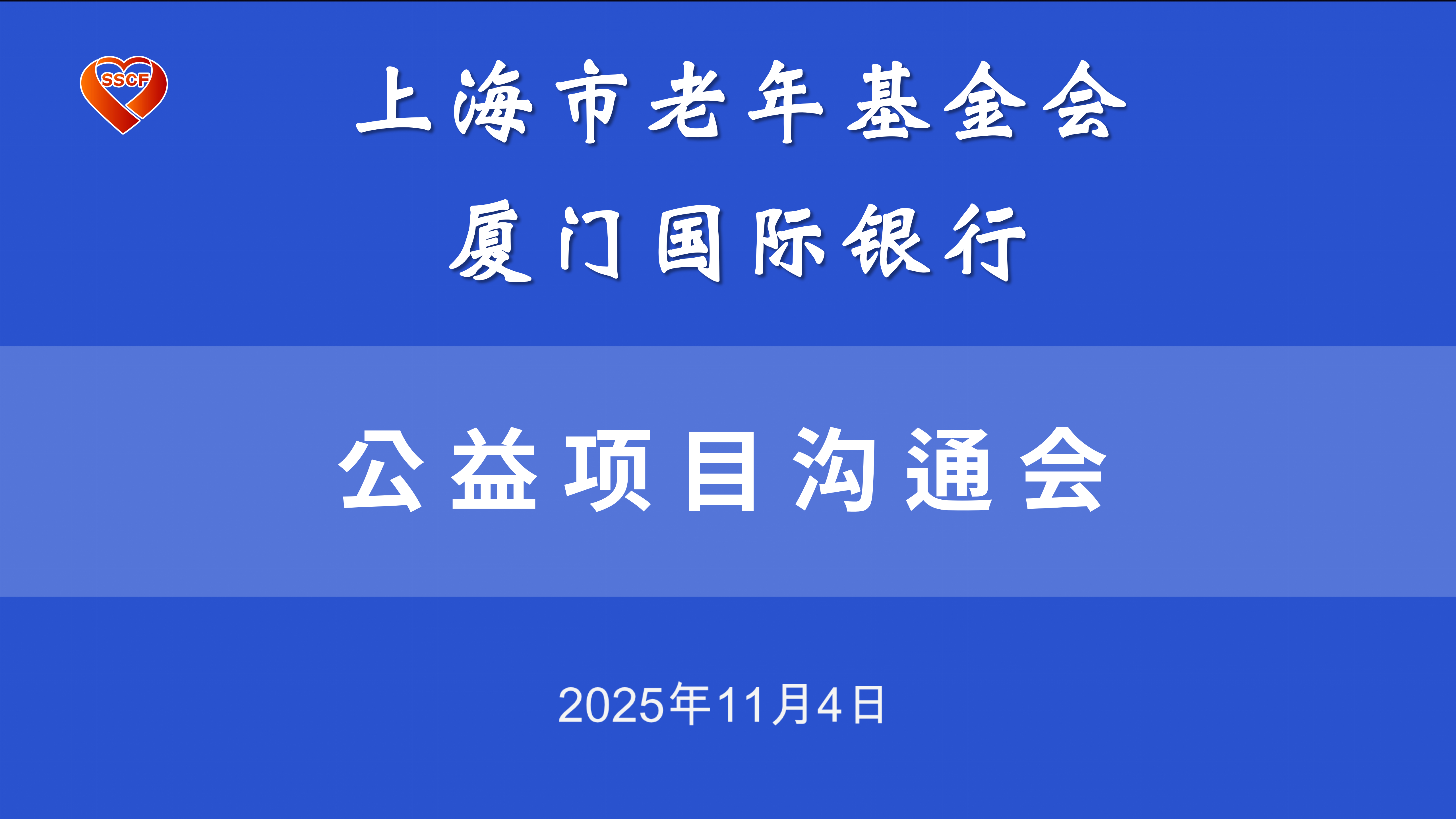 11月4日,上海市老年基金会、厦门国际银行上海市西支行召开公益项目沟通会,厦门国际银行上海市西支行副行长于伊人、长宁支行行长张骁;上海市老年基金会副理事长兼秘书长孙萍、办公室等有关人员参加。