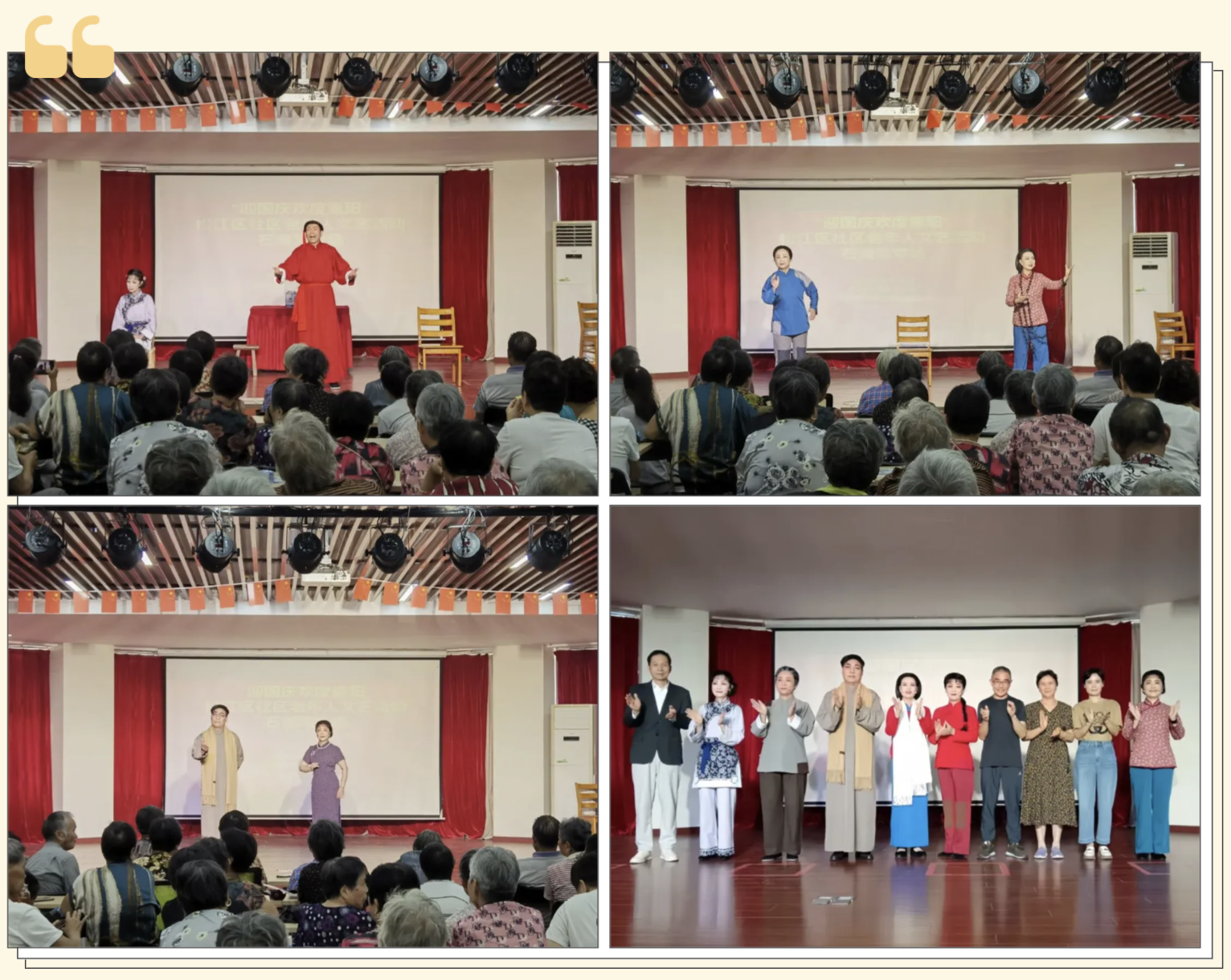 为丰富社区居民的假期文化生活,近日,市老年基金会松江区代表处、区老年协会主办,石湖荡镇工作站、镇老年协会承办的戏曲演出在恬润新苑社区热闹开场。这场充满传统韵味的“文化盛宴”,让居民在家门口尽享戏曲之美。