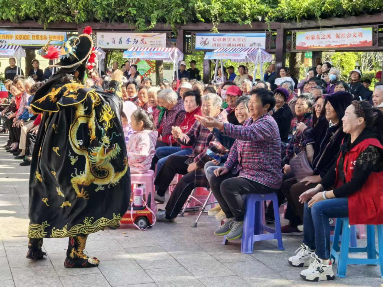 由上海市老年基金会浦东新区代表处派送的《笑口常开青春葆》综合性滑稽说唱专场,让老人们在欢声笑语中感受文化魅力。说唱表演《浦东浦东更娇美》、戏曲联唱《万紫千红总是春》《天女散花》《母子岭》、杂技表演《川剧变脸秀》以及由国家一级演员、著名说唱表演艺术家徐世利带来的上海说唱《美食大世界》《人生之光》等节目,精彩不断,燃爆全场,掌声连连。