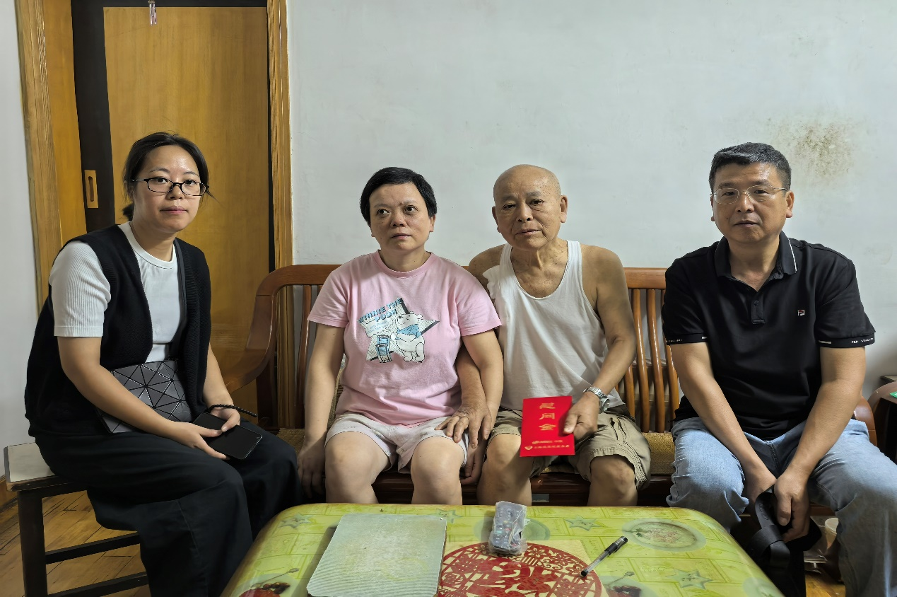 9月20日一早,中微志愿者耿亭和闵行区域的戴玉勇老师就开始在莘庄、古美、龙柏三地连续走访。当他们来到2024年新增特困老人王根林家时,老人特别激动,向他们诉说着自家的生活状况。2003年10月王根林患肾恶性肿瘤,2023年10月患前列腺恶性肿瘤同时又检查出肾功能衰竭。现居家透析每天2次/每次4小时,其妻高度近视(2200度以上),双目只能看见模糊的影子,并患轻度阿尔兹海默症。其女双目失明(视力壹级),1996年患脑胶质恶性肿瘤手术治疗,2015年病情恶化再次手术,现生活不能完全自理。由于夫妻二人养老金较低,女儿每月2300元重残补贴,全家降低治疗标准,不挂专家号,因患多种疾病,医疗费较大造成生活极为困难,除必须的家庭生活物品、饮食开支外全家没有额外开销。他十分感谢老年基金会和中微公司的雪中送碳,除了感谢,他无法用其他语言来表达自己的心情。耿亭耐心倾听他的诉说,并鼓励他相信现代医学的发展,祝愿他们家庭在大家的共同帮助下走出阴霾。