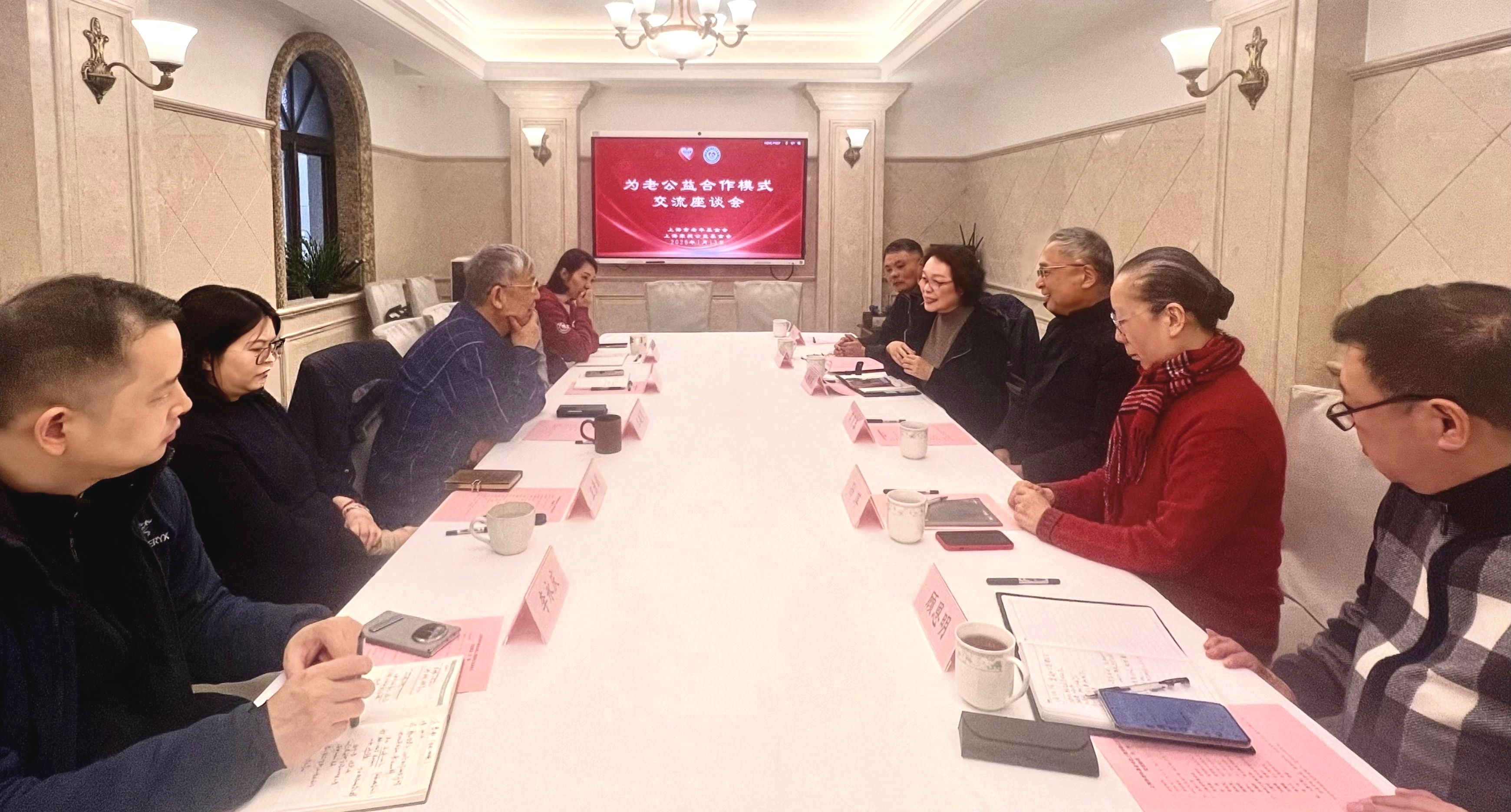1月13日,上海市老年基金会理事长莫负春、副理事长兼秘书长孙萍,徐汇区代表处会长彭秋萍,市会办公室主任顾恩明等一行,赴上海荣昶公益基金会交流座谈。上海荣昶公益基金会名誉理事长王建明、理事长马晓燕、执行理事长王清韵、理事兼秘书长李永庆、理事李佳参加座谈。
