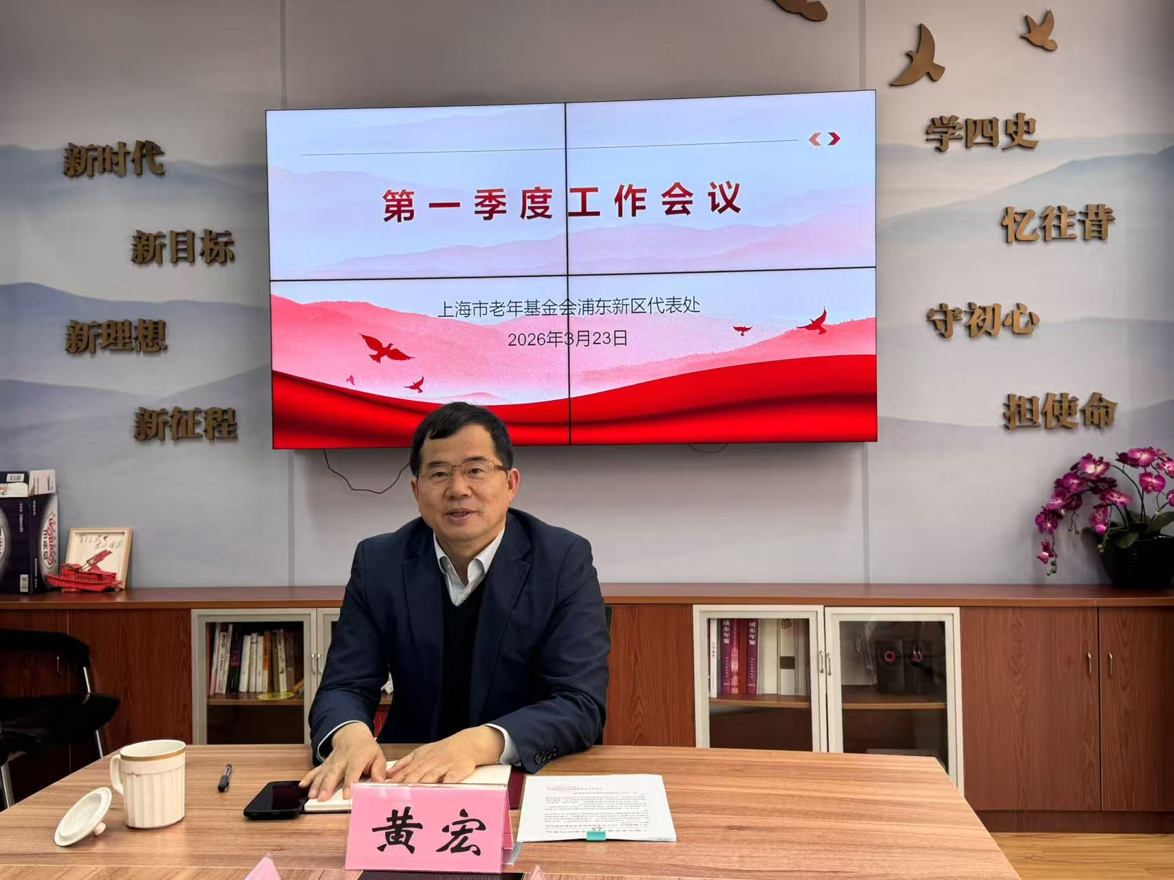 3月23日,上海市老年基金会浦东新区代表处召开2026年第一季度工作会议,全面总结一季度工作,复盘工作亮点与不足,部署下一阶段重点任务。浦东新区人大常委会副主任、代表处会长黄宏出席会议并讲话。