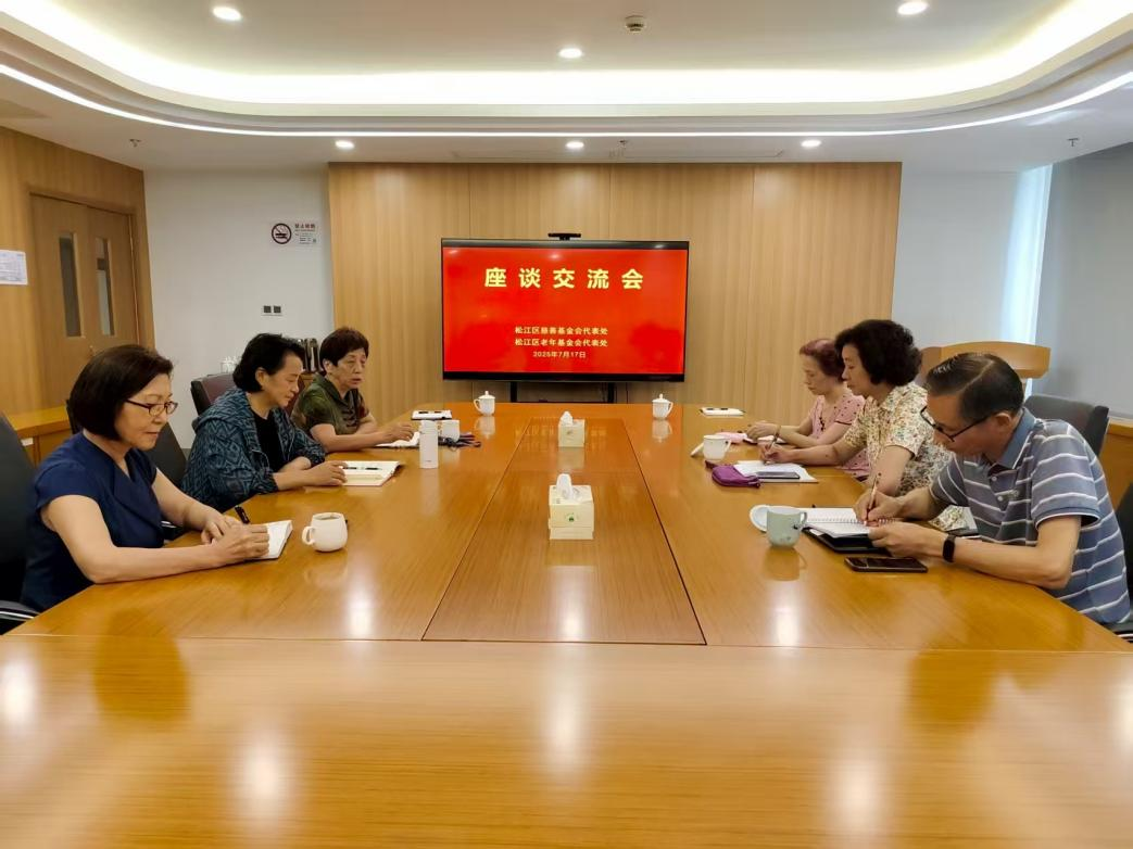 市慈善基金会松江区代表处高芝军、王美萍,市老年基金会松江区代表处林杰、高宇参加座谈会。