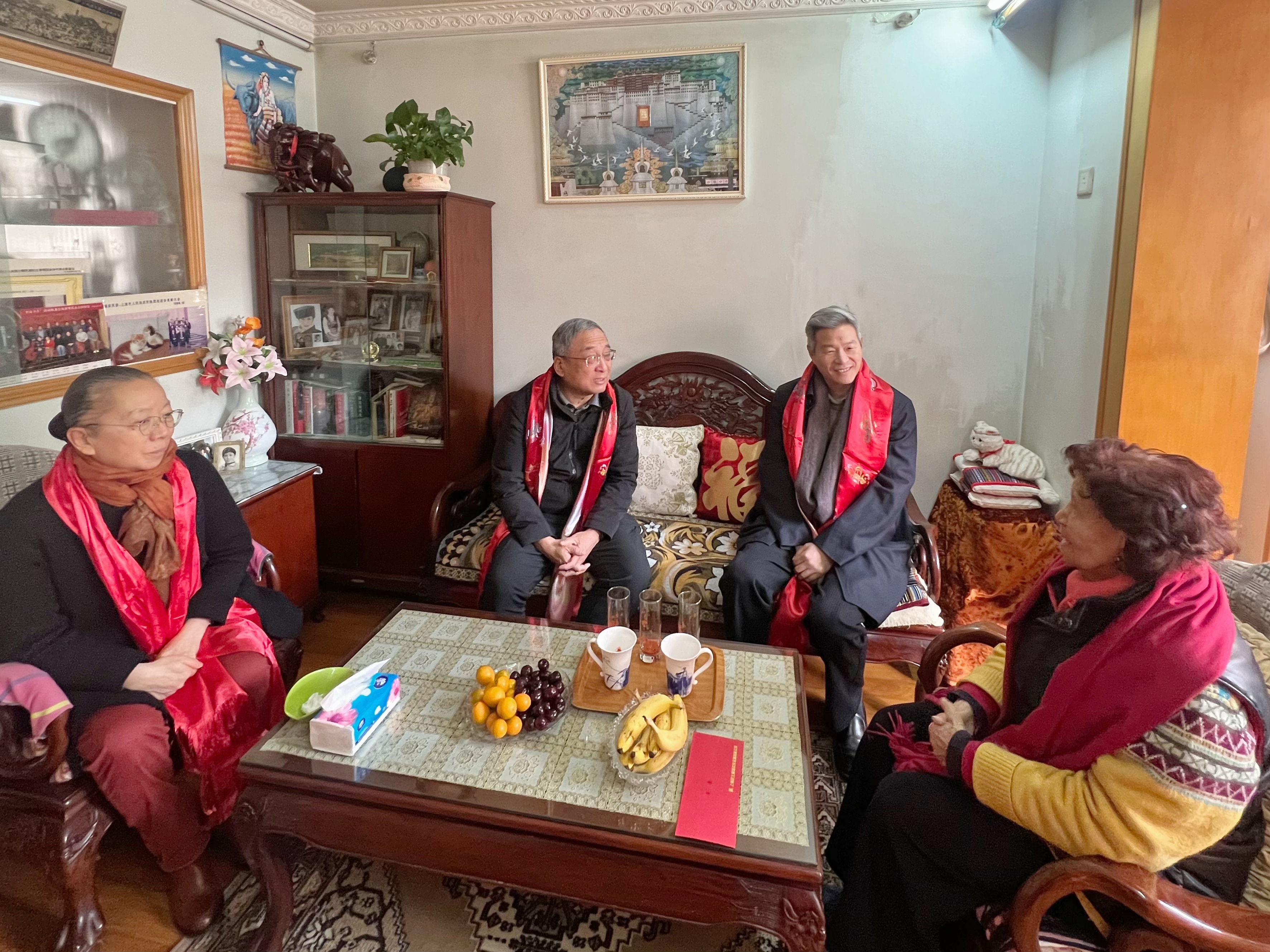 1月28日,上海市老年基金会理事长莫负春,副理事长兼秘书长孙萍,走访慰问援藏干部家属央金,向她送去组织的关爱和新春的祝福。久事集团党委委员、工会主席孙江陪同慰问。