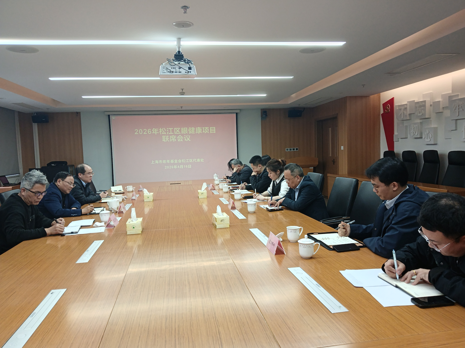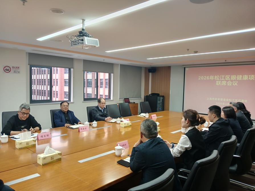 为系统总结前期工作,统筹谋划新发展,进一步凝聚共识、规范服务、提升效能,推动松江区老年眼健康公益项目高质量发展,4月16日,上海市老年基金会松江区代表处组织召开了“2026年松江区眼健康项目联席会议”。会议由松江区代表处副会长沈全云主持。松江区卫健委医疗执业监督科负责人、上海爱尔眼科医院、新视界眼科医院、普瑞眼科医院三家合作医疗机构负责人及项目代表,以及区代表处项目部、联络部相关同志齐聚一堂,共商眼健康项目高质量服务。