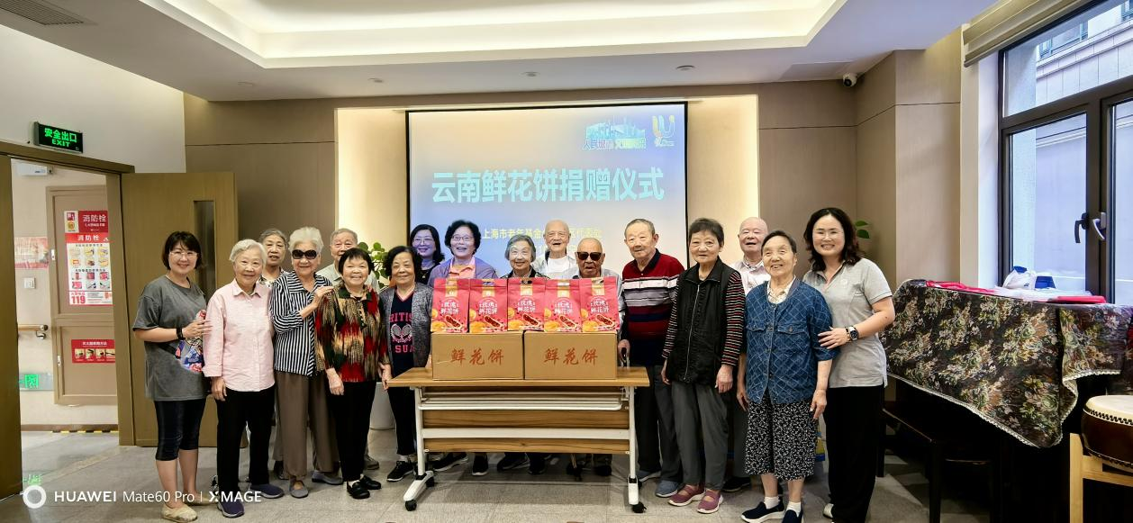 金秋送爽,丹桂飘香。在一年一度的重阳节来临之际,10月10日上午,上海市老年基金会长宁区代表处带着由上海市老年基金会转赠的鲜花饼,先后走进长宁区第一社会福利院和万宏悦馨养老院,为住养老人送上来自千里之外“春城”的节日祝福与甜蜜问候。