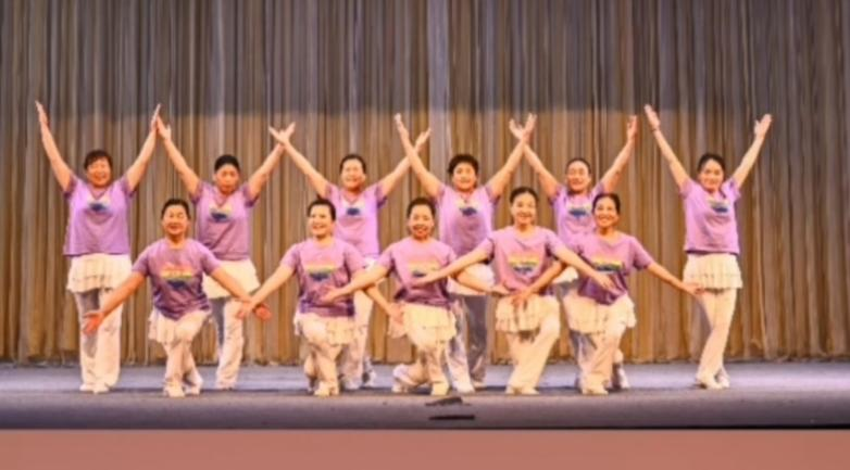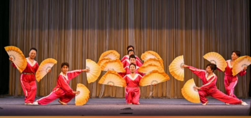 塘桥居委会的《火火的爱》健身操瞬间打破静谧,动感节奏中,舞者们尽情跳跃、伸展、踢腿,活力满满,完全看不出岁月痕迹!海欣居委会的太极功夫扇、新欣居委会的《咚不啦》健身操同样精彩绝伦,令人目不暇接。