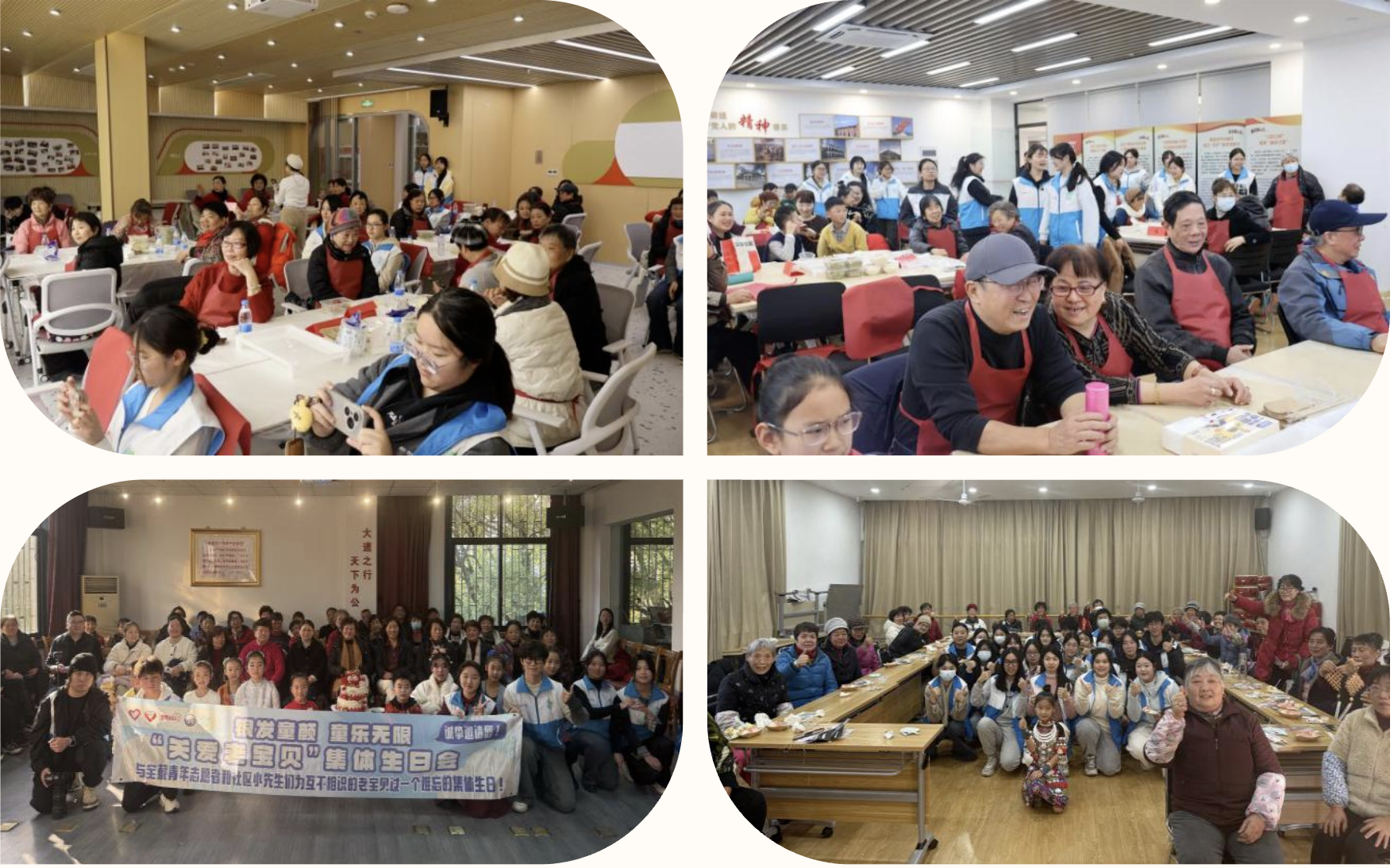 在淞南镇“淞颐家”市民活动中心,“饺子香暖聚·情系老宝贝”关爱生日会温情开展,将节日的暖意推向高潮。小先生们围坐在老人身边,一边请教包饺子技艺,一边分享校园趣事,文艺表演轮番上演,温馨的生日歌响彻全场。一位独居老人拉着志愿者的手轻声说道:“这是最热闹的一次生日,有孩子们的陪伴,心里特别暖。”