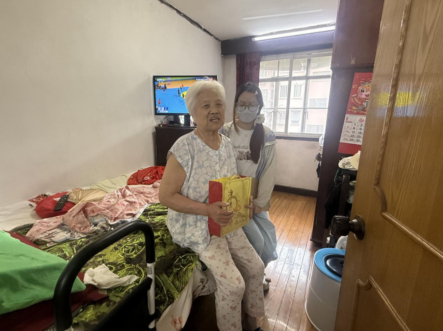 90岁的吴士英,是上海市“三八”红旗手,她同样是一位为祖国建设有过特殊贡献的高龄独居老人。社区党总支副书记顾玉婷和社区志愿者管菊花又把迎“国庆节”、迎“中秋节”的“双节”慰问提前送到了老人手中。老人因患有基础疾病,她们叮嘱老人要注意身体,按时吃药。老人表示:有身边社区的许多好心人的关心照护,觉得晚年生活很温馨,每每被“记得”受到关爱,感觉很幸福,很安全!