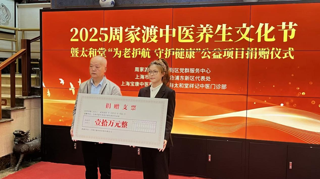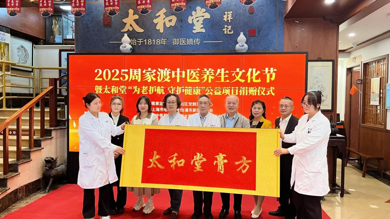11 月 6 日上午,上海市老年基金会浦东新区代表处、周家渡街道齐河街区党群服务中心、上海宝康中医医院、上海太和堂祥记中医门诊部联合举行“2025 周家渡中医养生文化节暨太和堂‘为老护航、守护健康’公益项目捐赠仪式”,为浦东老年群体送上了一份秋冬养生 “健康大餐”。