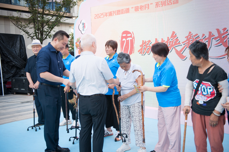 在浦兴路街道办事处与上海市老年基金会浦东新区代表处的共同推动下,现场正式发布浦东新区代表处暖心助老公益项目“拐杖换新计划”,并为首批长者代表更换新式拐杖。该项目以老年人最常用的辅具为切入点,通过专业机构进行身体状况评估与辅具量身调试,为长者免费“以旧换新”,提供更轻便、更贴合人体工学的拐杖,并由志愿者手把手指导使用。82岁的刘大爷握着新拐杖试走两圈,欣喜地表示:“新拐杖握着不硌手,走起来脚底都稳了!”眼角笑意洋溢。