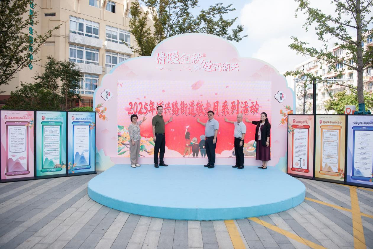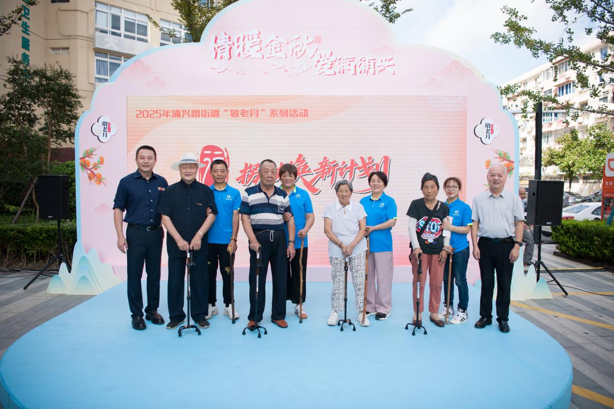 活动最后,在长者们和社区居民的见证下,浦兴路街道办事处主任施皓、浦东新区民政局老龄和养老服务工作处处长李志伟、浦东新区代表处秘书长严怀中、浦东新区养老服务和社会福利事务中心副主任陆莉莺、浦兴路街道办事处副主任张真琦共同启动2025年浦兴路街道敬老月系列活动,正式拉开“医、食、助、行、游”五大主题服务的序幕。