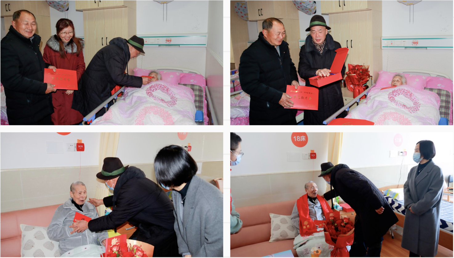 慰问现场暖意融融,黎仕忠认真倾听老人的长寿心得与生活趣事,反复叮嘱家属及照料人员要悉心呵护老人日常起居,用心用情做好服务保障,让老人安享幸福晚年,并为老人们送上了慰问金、大红围巾等慰问品。