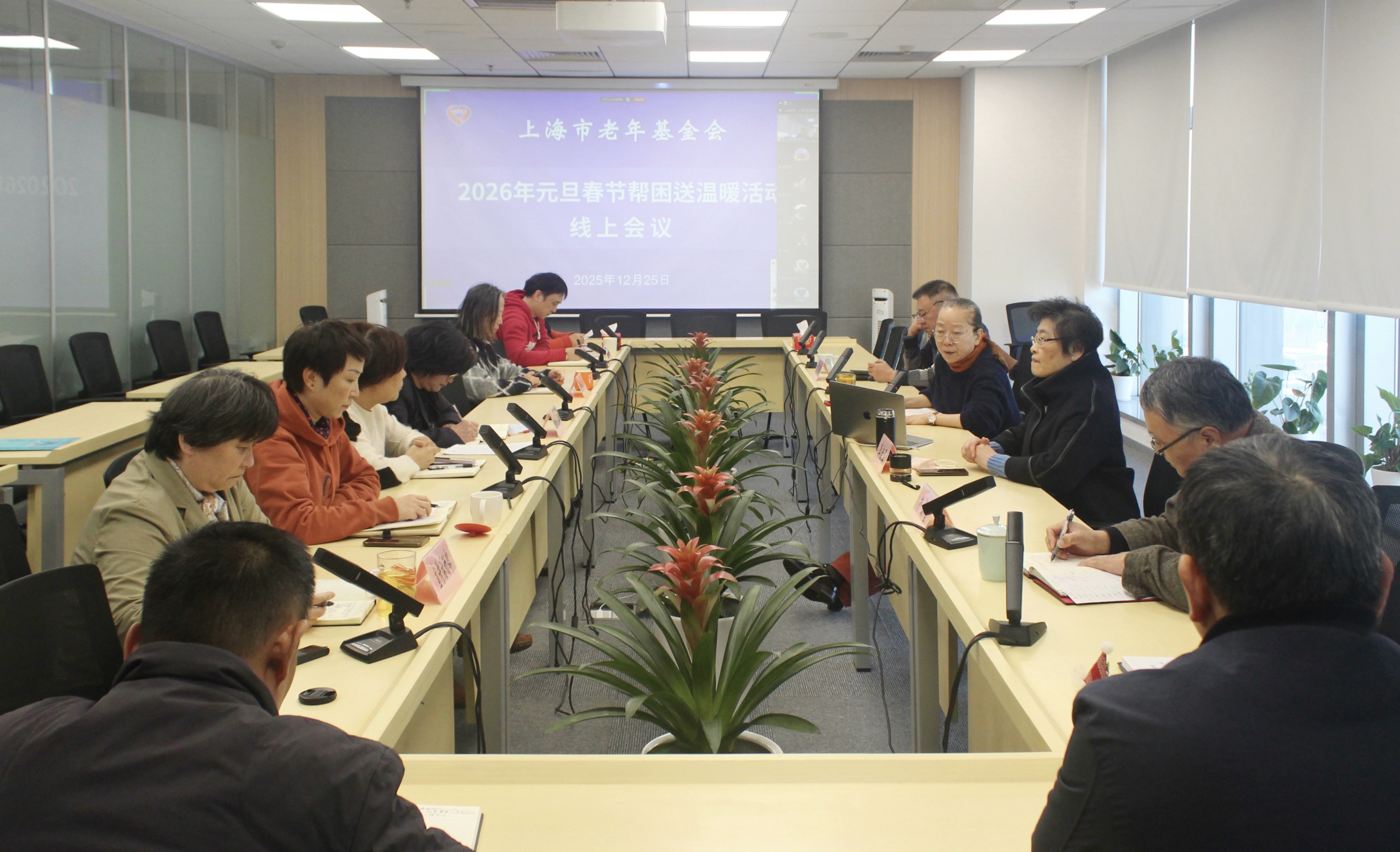 12月25日,上海市老年基金会召开2026年元旦春节帮困送温暖活动线上会议。副理事长兼秘书长孙萍主持会议,副理事长兼副秘书长李佳玉、各区代表处、行业工作站负责人以及市会办公室全体工作人员参加。