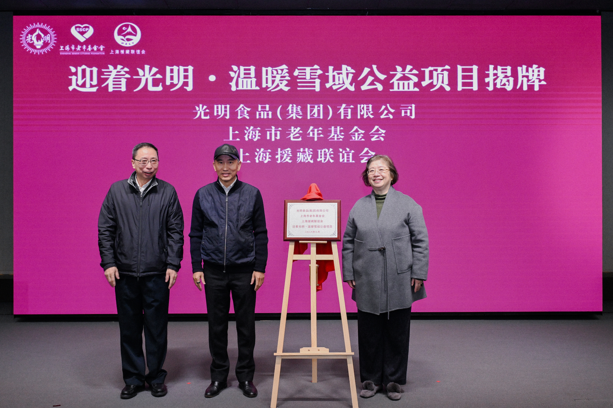 3月12日,由上海市老年基金会、光明食品(集团)有限公司、上海援藏联谊会共同发起的“迎着光明·温暖雪域”建藏援藏老同志关爱项目启动仪式在光明食品集团总部举行。上海市老年基金会理事长莫负春,副理事长阎祖强、孙萍、何以琴、李佳玉;光明食品集团党委书记、董事长是明芳,党委副书记朱晨红,品牌总监、工会主席刘婧;上海第二批援藏干部原总领队,市合作交流办原党组书记、主任林湘,上海市住房和城乡建设管理委员会副主任、上海市城市管理行政执法局党组书记、局长、上海援藏联谊会会长张永刚,浦东新区政法委书记张劲松,上海市红十字会副会长万兴旺,上海市交通委员会执法总队督办、上海援藏联谊会副会长、秘书长赵伟;援藏联谊会片区负责人代表等应邀参加启动仪式。