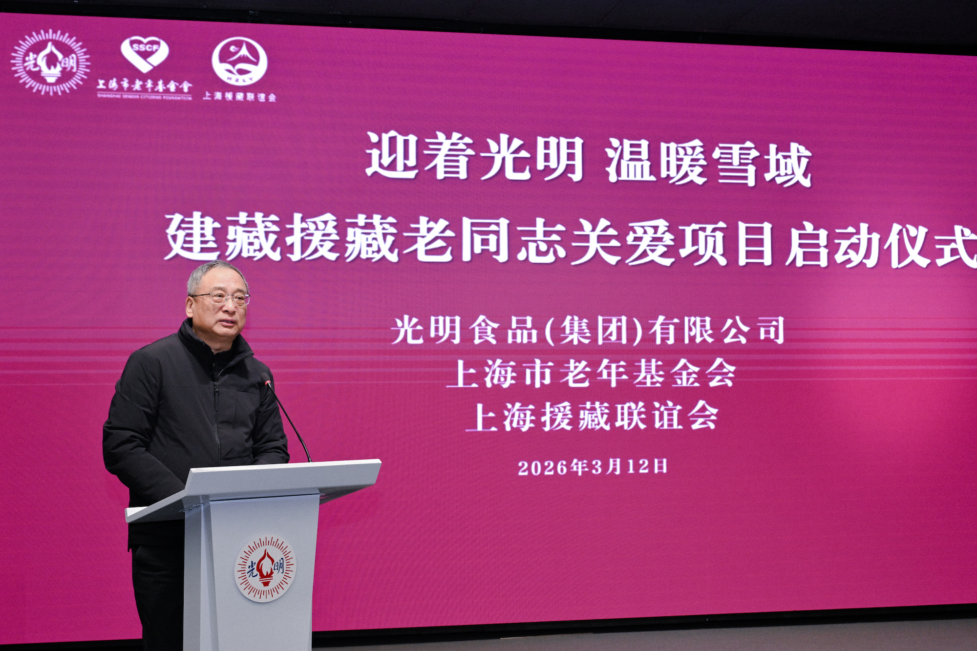 今天,我们怀着无比崇敬的心情,共同见证“迎着光明·温暖雪域”建藏援藏老同志关爱项目正式启动。我谨代表光明食品集团,向上海市老年基金会、上海援藏联谊会及各位领导嘉宾表示诚挚感谢,向全体建藏援藏老同志致以崇高敬意!光明食品集团始终将“感恩于心、担当于行”作为发展的核心底色。我们深信,城市最珍贵的底色是爱与尊重,企业最大的财富是社会责任。高原空气虽稀薄,但爱的力量足够厚重;雪域虽苍茫,但善意的光芒五彩斑斓。此次携手开展关爱项目,是光明践行国企使命的必然选择,更是我们向援藏老同志致敬的实际行动。