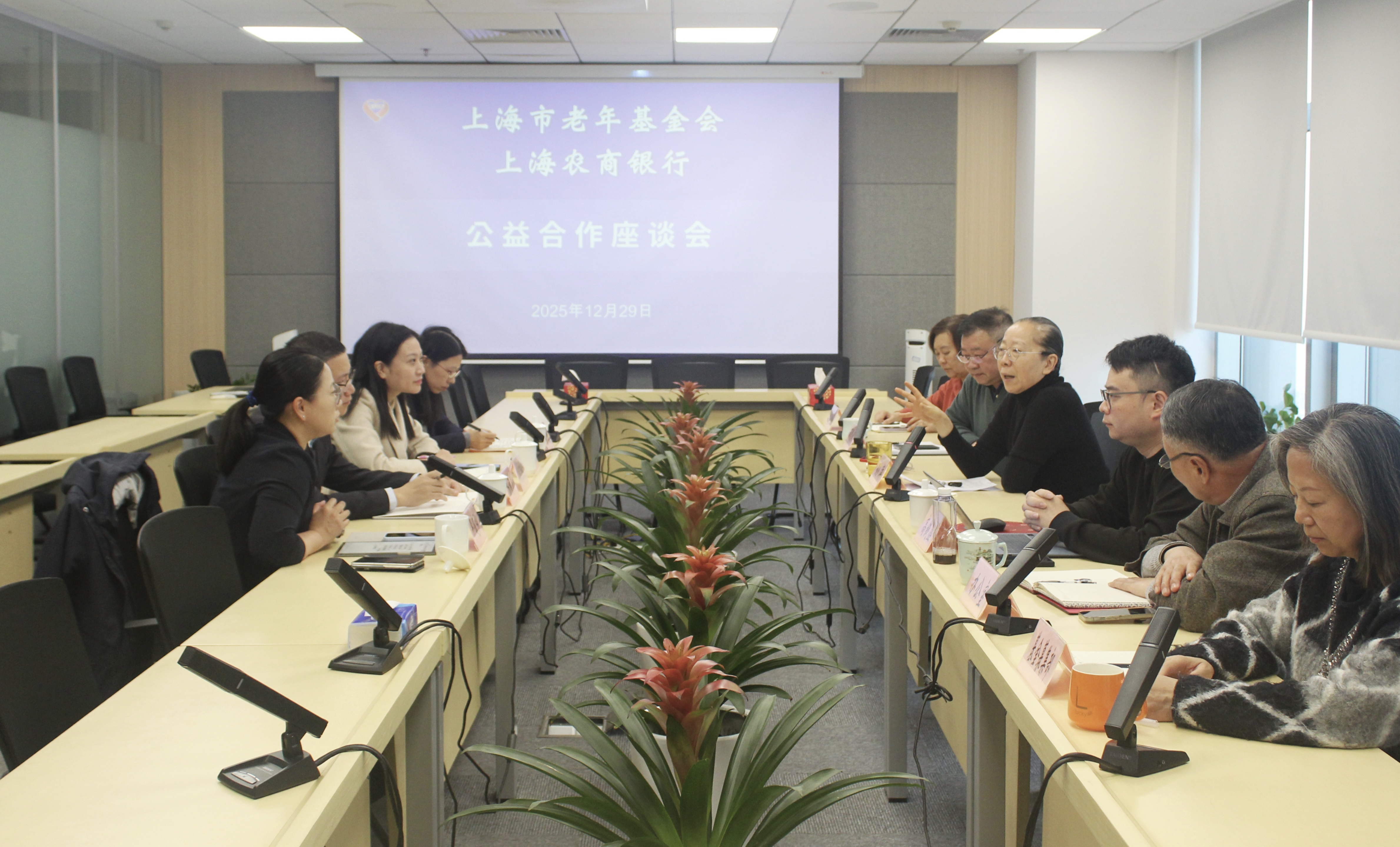 12月29日,上海市老年基金会与上海农商银行召开公益合作座谈会。副理事长兼秘书长孙萍、办公室主任顾恩明,办公室相关部门负责人,农商银行总行营业部总经理杨祯宁,总行基础客群部总经理王兰,总行基础客群经营部总经理助理严超弘等参加。