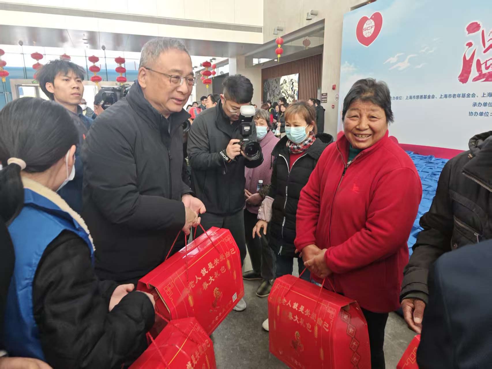 崇明区副区长宋学梅代表主办方致辞,向长期关心支持崇明慈善事业与老年群体的社会各界表达谢意,传递了让困难老人安享新春的美好愿景。现场举行了“温暖送三岛”慈善义诊项目签约和慈善捐赠仪式。朱礼福代表上海市老年基金会向崇明区困难老人捐赠帮困慰问金14.6万元和价值27.53万元的爱心实物,为困难老人筑牢新春幸福防线,助力他们舒心过年。