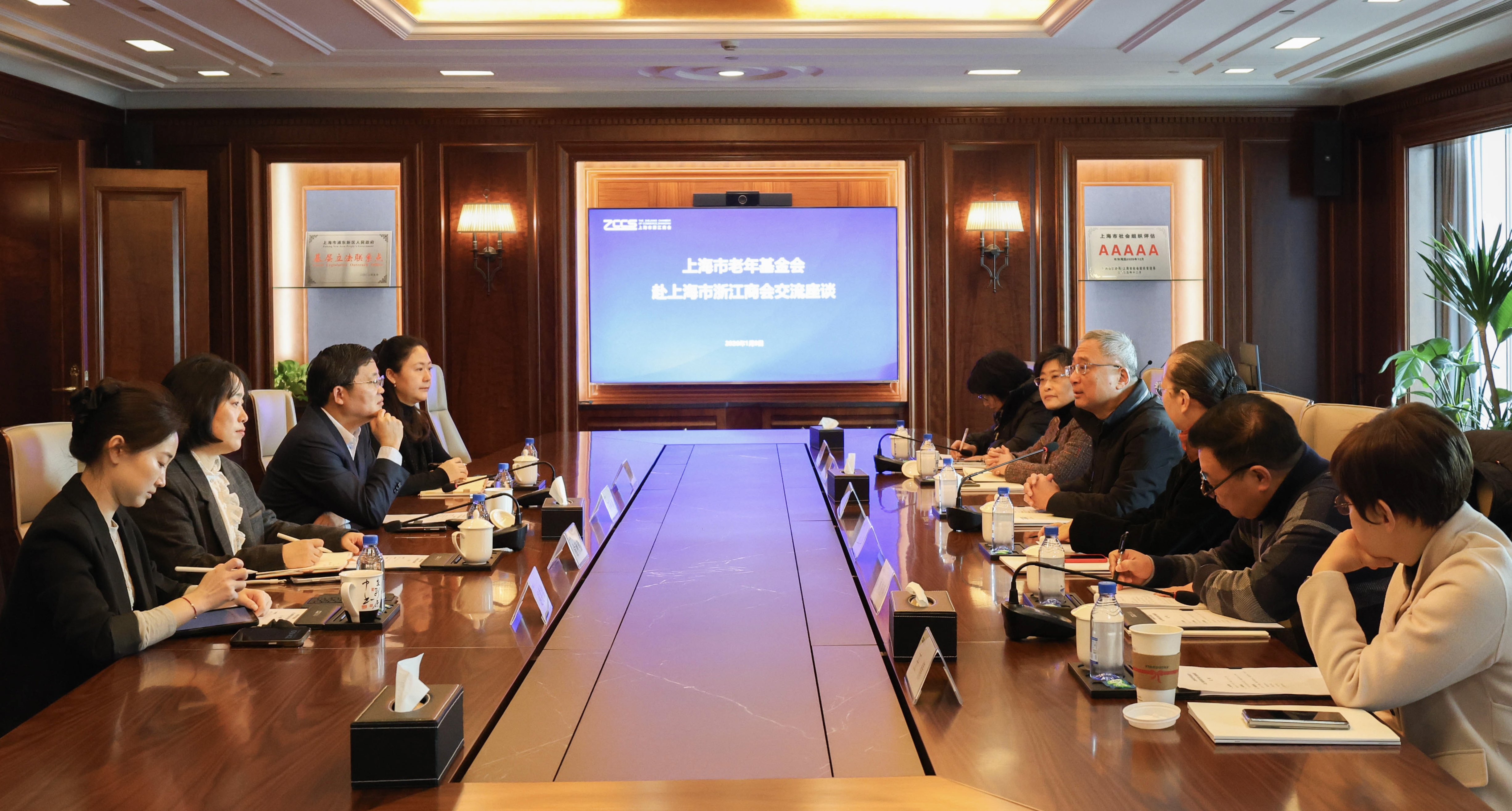 1月9日,上海市老年基金会理事长莫负春,副理事长兼秘书长孙萍,副理事长兼副秘书长李佳玉,办公室主任顾恩明等一行专程赴上海市浙江商会,就深化为老公益合作开展座谈交流。上海市浙江商会党委副书记、执行副会长、秘书长吴仲春,副秘书长俞秋勤,会员服务中心副主任、会员一部部长罗萍,办公室主任赵雯伟参加座谈交流。上海市政府参事室王倩应邀参加。