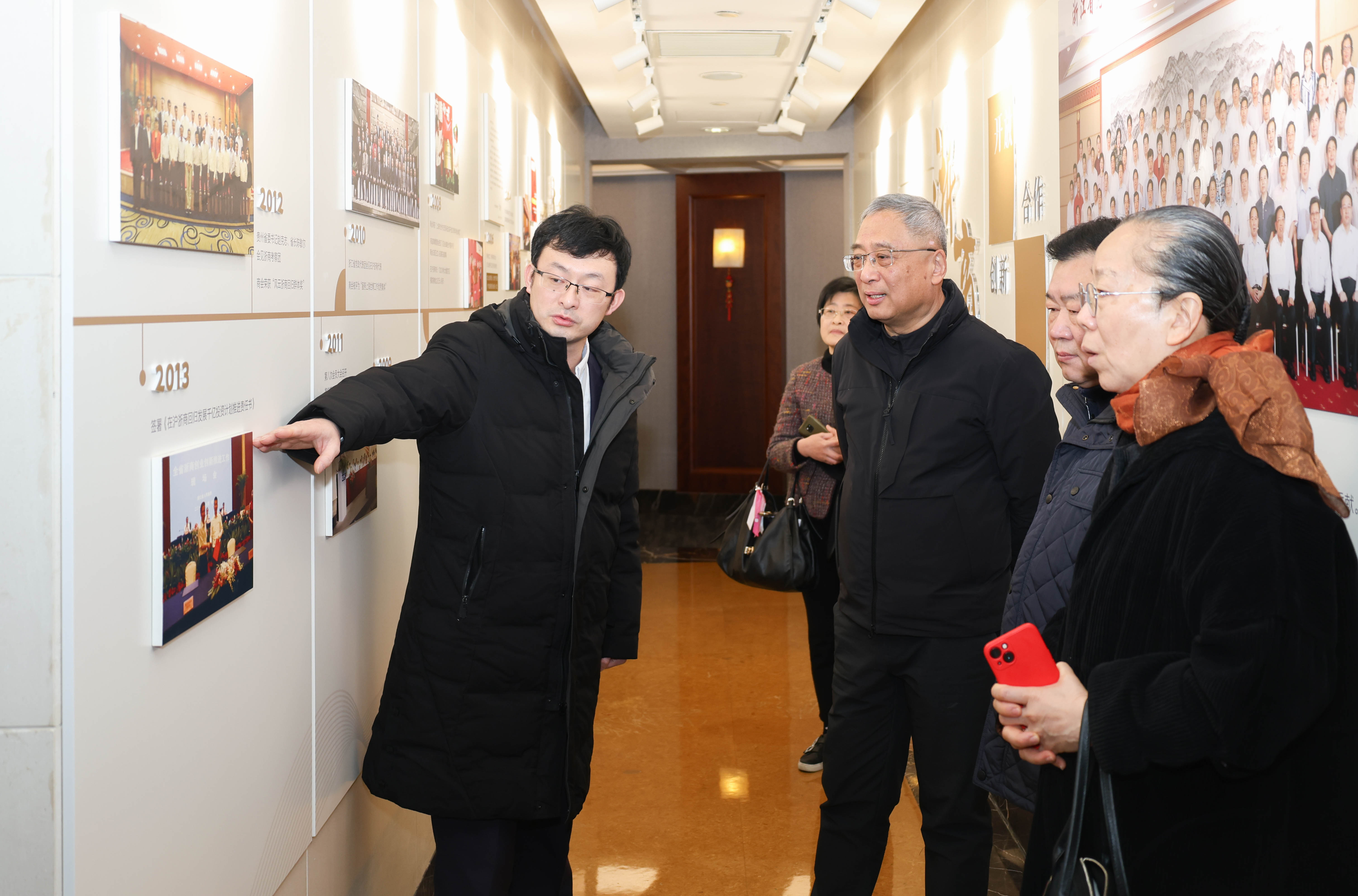 座谈开始前,莫负春一行在上海市浙江商会领导的陪同下,参观了商会发展历程陈列展,详细了解其历史沿革与社会贡献。