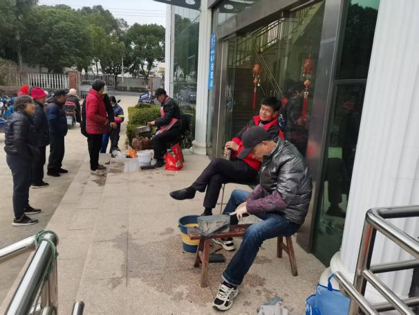 活动现场秩序井然、暖意融融。志愿者们布置好服务点位,为村民提供免费理发、义务磨刀等便民服务。