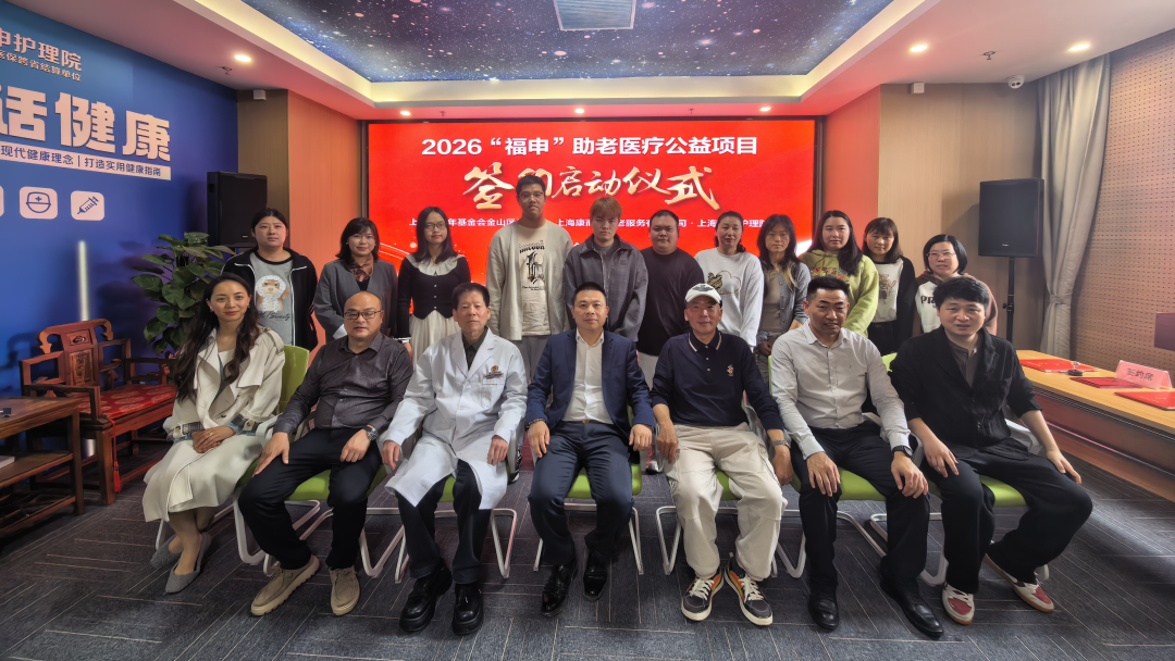 4月10日上午,2026年“福申”助老医疗公益项目启动仪式在上海福申护理院举行。上海市老年基金会金山区代表处常务副会长黎仕忠、上海康而寿养老服务有限公司总经理余国强、上海福申护理院总经理余智行等出席会议,会议由上海福申护理院院长兼书记孙书明主持,各街镇(高新区)老龄干部出席参加。