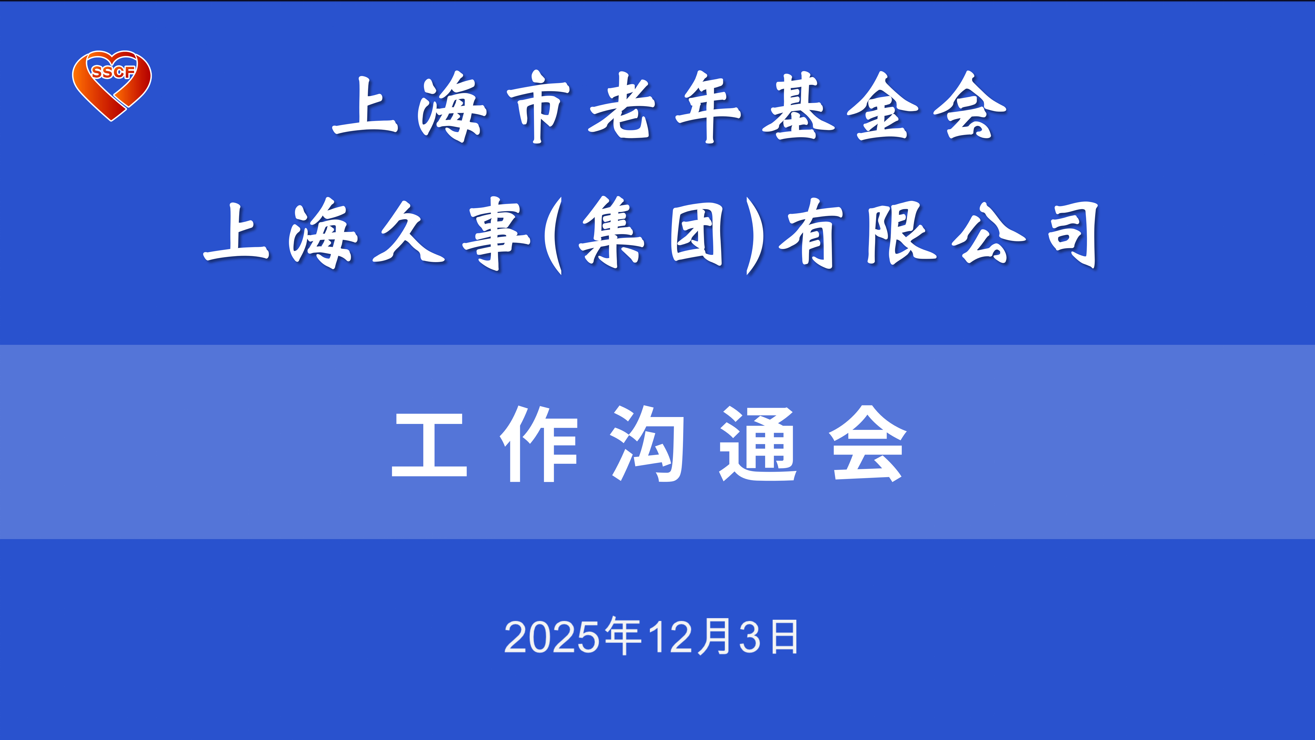 12月3日,上海市老年基金会与上海久事(集团)召开工作沟通会。此次会议是双方继11月6日初步沟通后的深化拓展与务实推进,旨在进一步明确合作目标、细化责任分工,凝聚双方优势资源与协同合力,构建长效可持续的合作平台,携手赋能上海老龄事业高质量发展。