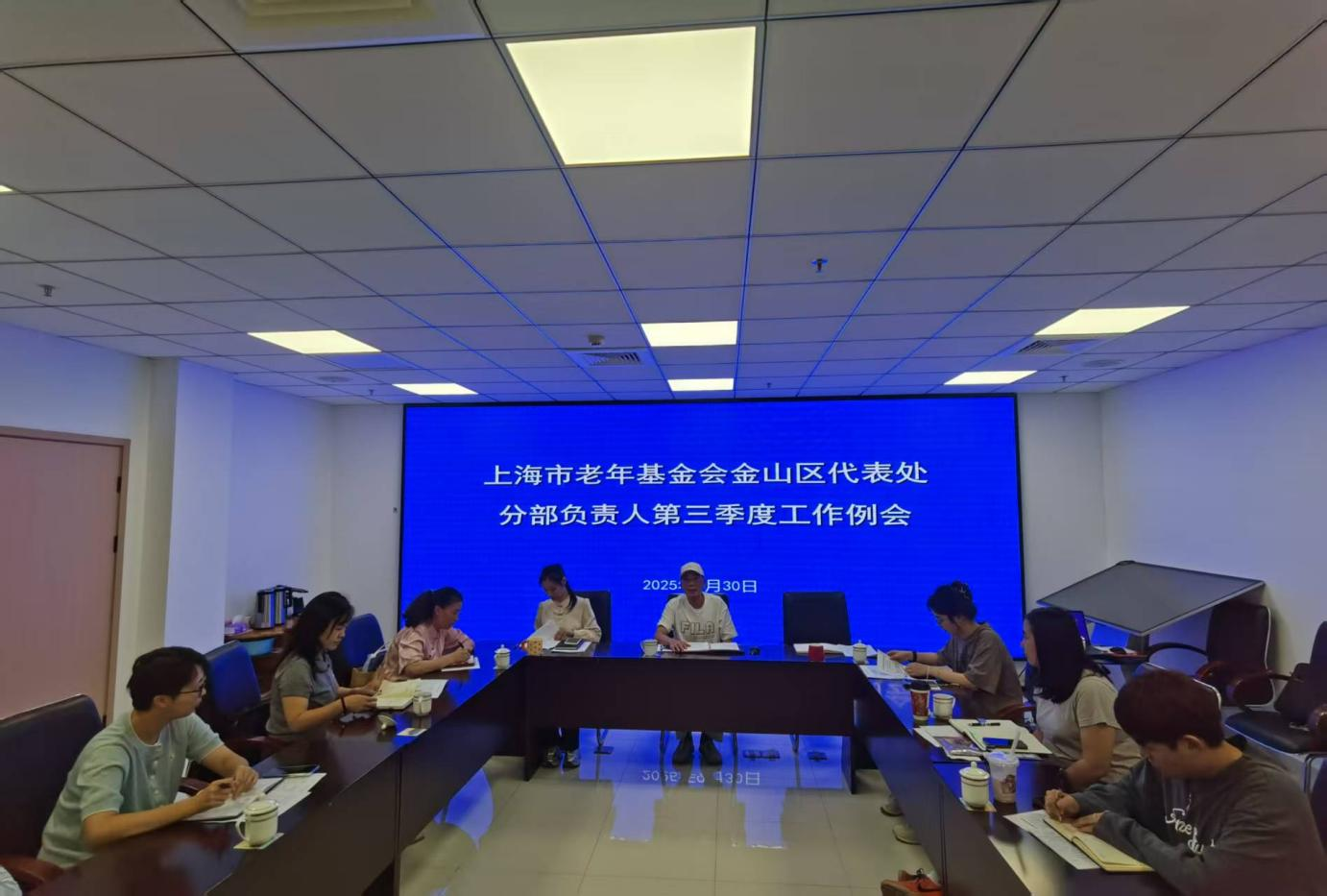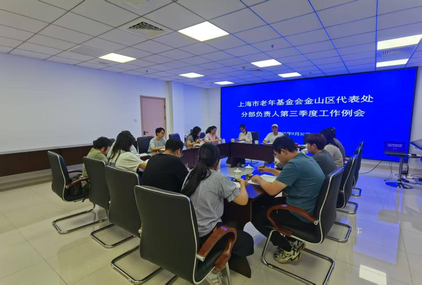 9月30日下午,上海市老年基金会金山区代表处第三季度分部负责人会议在板桥东路召开,会议由区代表处常务副会长黎仕忠主持,各街镇(高新区)分部负责人出席。