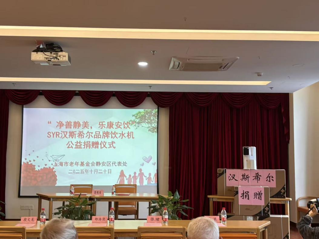 金秋送爽,情暖静安。10月20日下午,“净善静美,乐康安饮”SYR汉斯希尔品牌饮水机公益捐赠仪式在静安区和养老年福利院顺利举行。SYR汉斯希尔品牌向上海市老年基金会静安区代表处捐赠20台台式反渗透饮水机及配套耗材,以切实行动守护老年群体的饮水健康,助力提升长者的生活品质与幸福感。