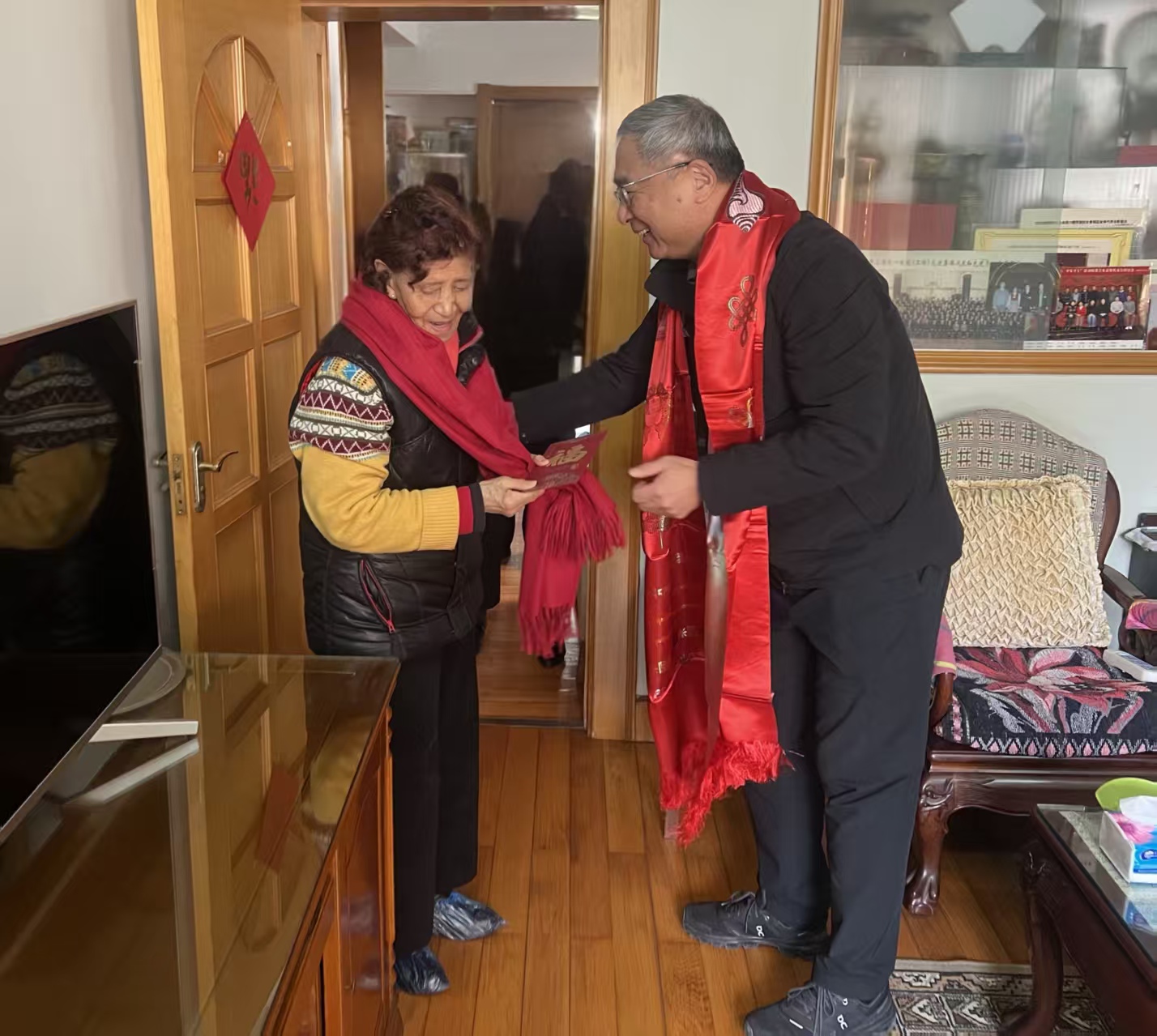 1月28日,上海市老年基金会理事长莫负春,副理事长兼秘书长孙萍,走访慰问援藏干部家属央金,向她送去组织的关爱和新春的祝福。久事集团党委委员、工会主席孙江陪同慰问。