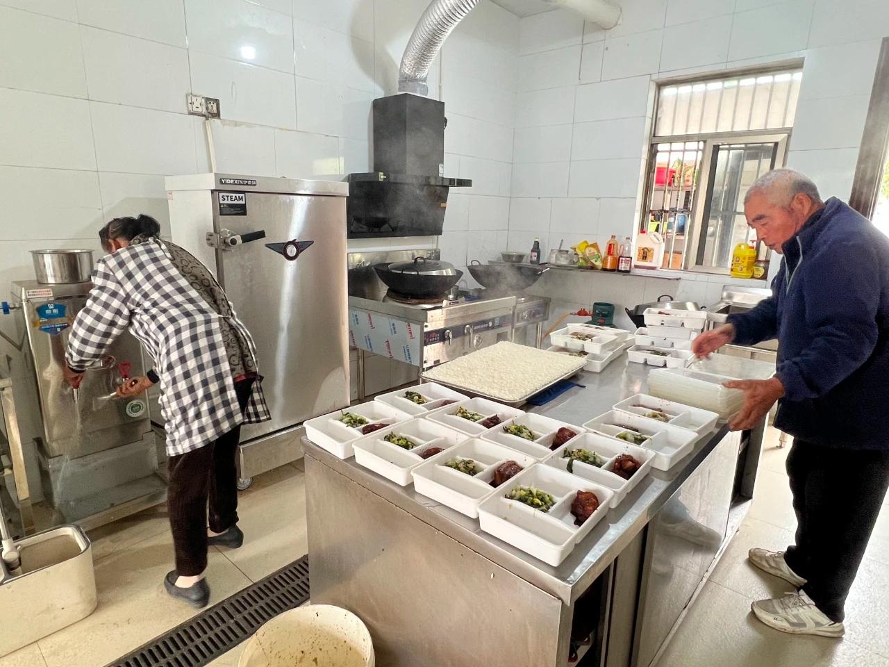 清晨七点,石湖荡镇洙桥村的助餐点厨房里已飘出饭菜香,七十多岁的顾仲珍阿姨和丈夫正忙碌着,青菜下锅,红烧肉炖得软糯,两人配合默契,将饭菜一一装盒,再分别骑上电动三轮车和电动车,赶在中午前把热乎的饭菜送到村里约30位老人手中。