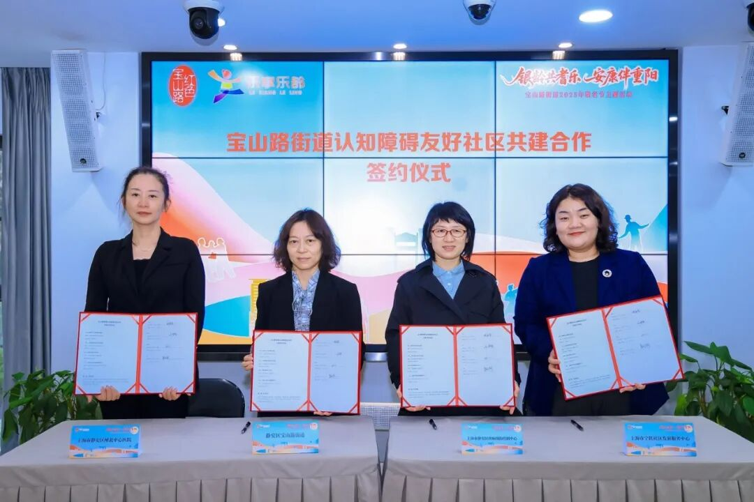 随后,三位不同行业的“为老服务达人”分享了他们的感人故事:象山海鲜城主理人王清峰先生多年来坚持为社区孤寡老人送上年夜饭,社区卫生服务中心的李玉蒙医生以“耐心、细心、关心”的“三心”原则为老年群体提供贴心服务,宝善公益服务事务所理事长张陆妹老师更是用12年的坚守诠释了退休不褪色的奉献精神。现场还启动“记忆宝盒”计划,街道联合静安区精神卫生中心、闸北中心医院等签署四方协议,通过筛查、评估与个性化训练,为认知功能障碍长者提供干预服务。最后,胡建文、俞宙冬、沈连心、曹国香及王小蓓共同启动2025年“九九重阳之九个‘一’”活动,从爱心长寿面到文娱大礼包,以实际行动传递对长辈的关怀。