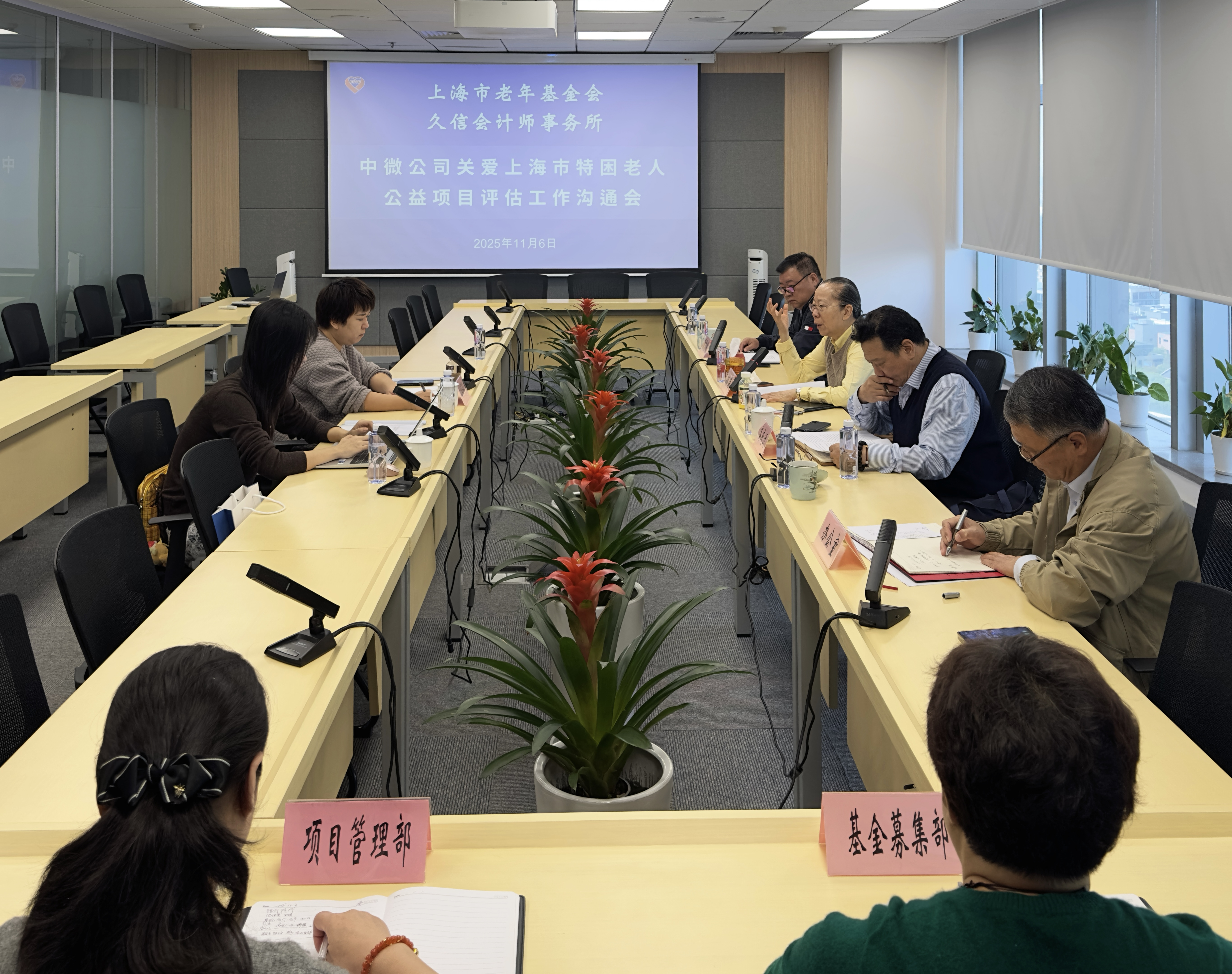 11月6日,上海市老年基金会、久信会计事务所召开“中微公司关爱上海市特困老人”公益项目评估工作沟通会。副理事长兼秘书长孙萍、监事高庆迁、办公室主任顾恩明,久信会计师事务所项目代表候乐怡等参加。孙萍主持会议。