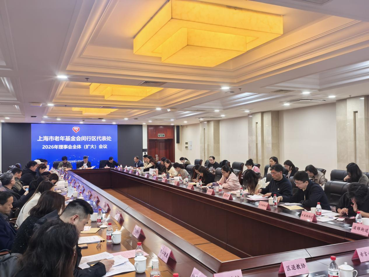 4月3日下午,上海市老年基金会闵行区代表处2026年理事会全体(扩大)会议在闵行区委党校顺利召开。本次会议由区代表处副会长汪跃如主持。区人大常委会副主任、区代表处会长陈皋、区代表处常务副会长吴跃英、顾问陈志福、区民政局相关领导、区代表处全体理事、14个街镇(工业区)分管领导、社事办(老龄条线)负责人共45人参加了会议。