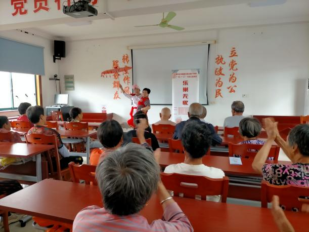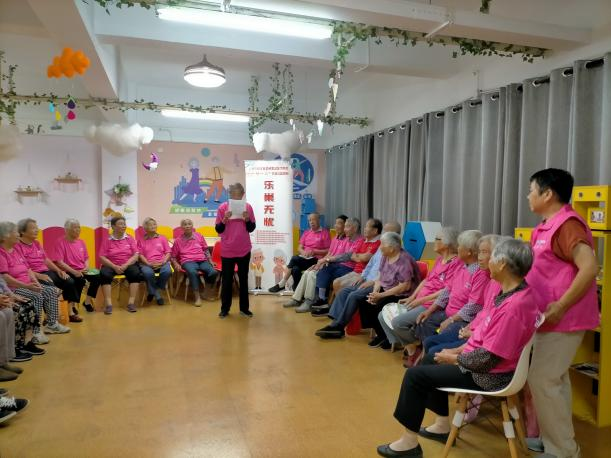 恒康睦邻点内,志愿者与老人们共唱红歌后,又一同学习了简单的拍打养生操,现场气氛温馨而热烈。