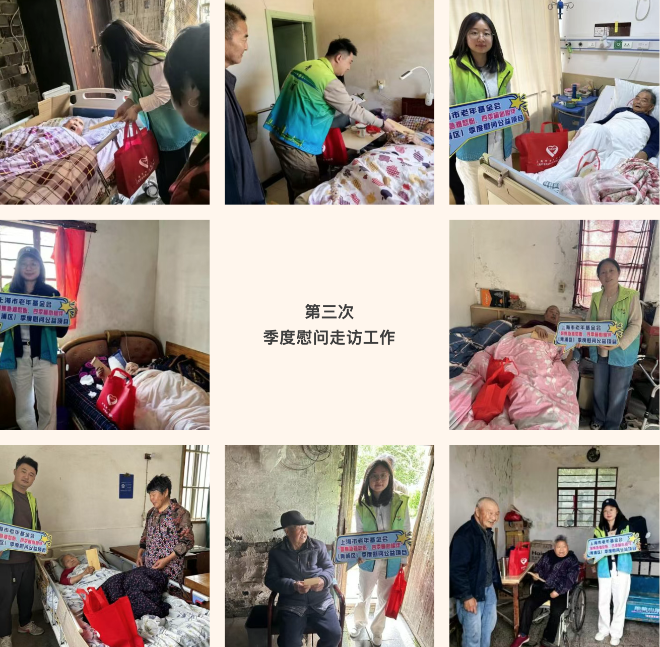 “聚焦急难愁盼,四季暖心相伴”季度慰问走访工作是青浦区代表处深入贯彻上海市老年基金会“重心下移、服务下移、资源下移”的工作要求,积极响应远郊高龄特困老人最迫切、最现实“急难愁盼”问题的具体举措。特别聚焦于区内发展相对薄弱的白鹤镇与练塘镇,切实提升高龄特困老人的生活品质与精神慰藉,传递社会温度,守护幸福晚年,为构建和谐青浦贡献力量。