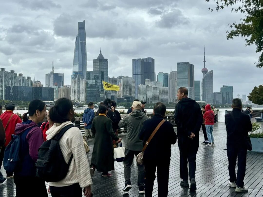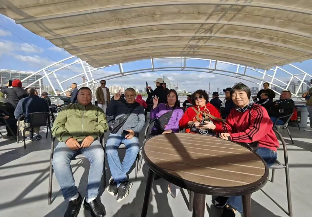 老人们凭栏远眺,沉醉在上海的繁华画卷中,欢声笑语满溢船舱。