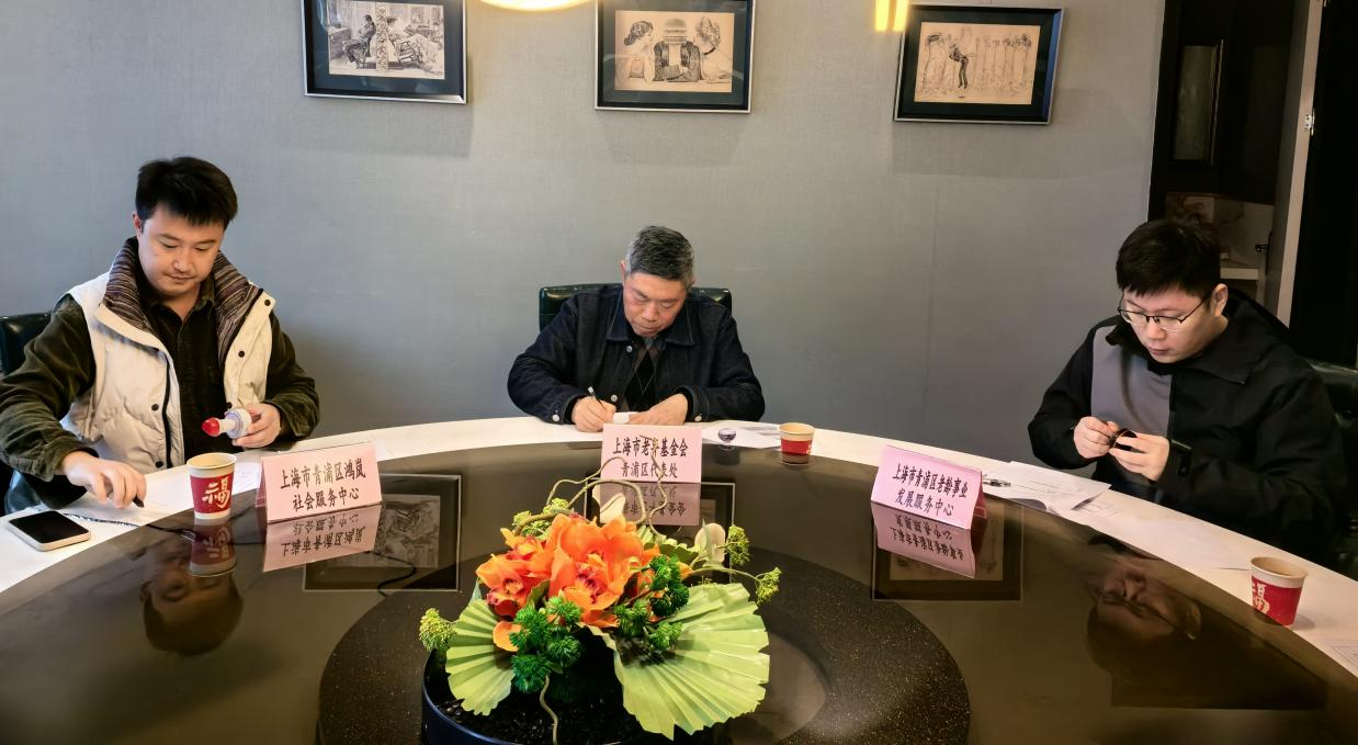 3月23日,上海市老年基金会青浦区代表处开展青浦区“银龄同心绘”助老志愿服务公益项目三方协议签署仪式,上海市青浦区老龄事业发展中心主任蒋涛、副主任俞兰兰、青浦区代表处秘书长徐朝晖及项目承接方负责人等共同出席。